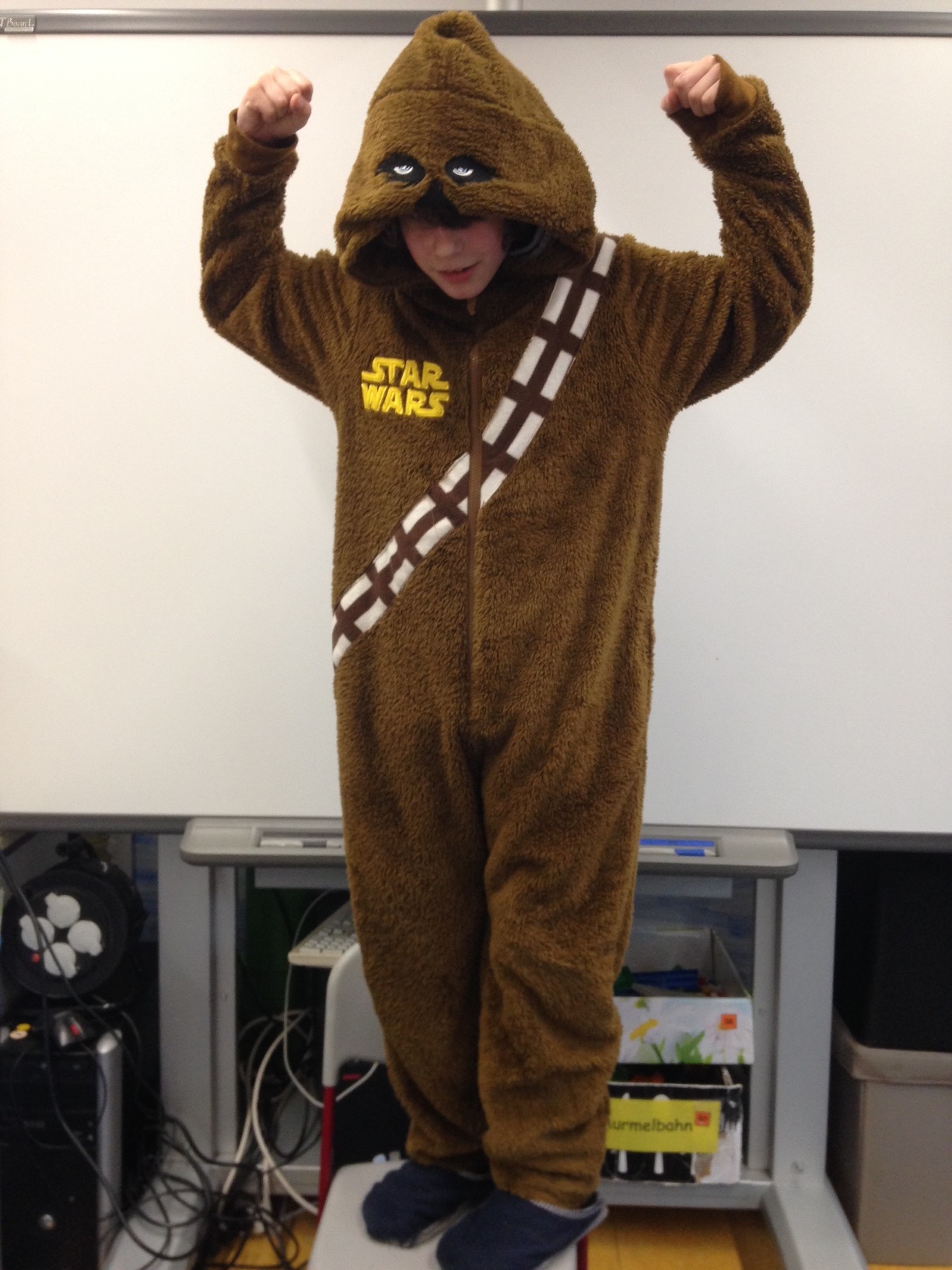 Heute feiern wir unser Tierfest. Schüler wie Lehrer verkleiden sich, tanzen und singen miteinander, spielen Spiele, wie "Mein rechter, rechter Platz ist leer, ich wünsche mir die Fledermaus her" und haben einfach sehr viel Spaß.